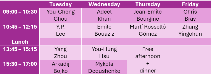 The workshop will take place in R610 at SIMIS from September 16 to September 19.
